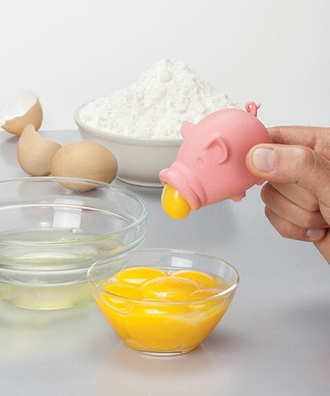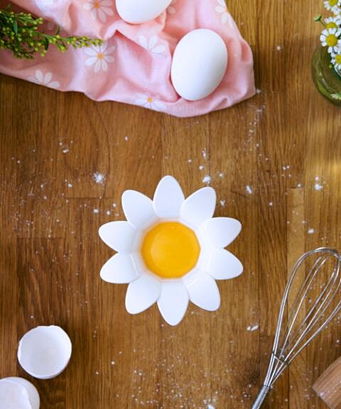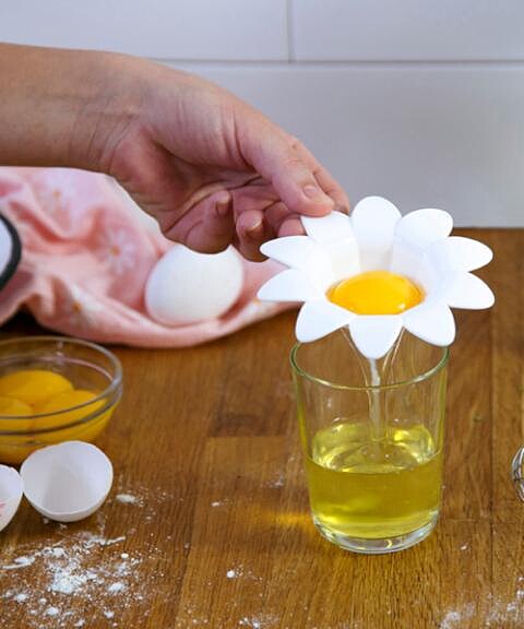 蛋白蛋黃分離的過程,蛋黃與分離器立刻變成一朵雛菊太可愛了~