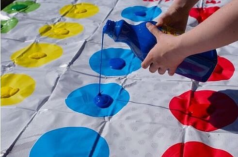 扭扭樂有非常多種版本,有人在草地上自製扭扭樂!