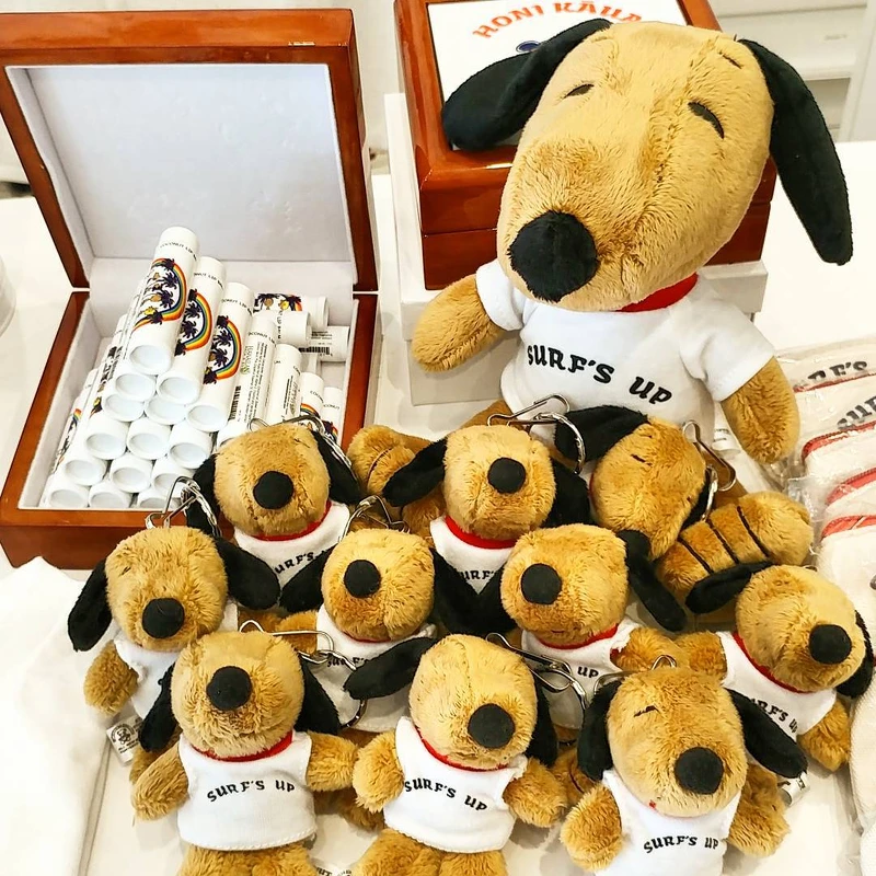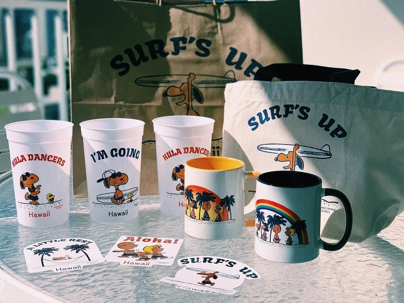 在夏威夷歐胡島上的史努比專賣店「Moni Honolulu」推出一系列周邊商品,販售全身曬成焦糖色的史努比與查理布朗,拿著衝浪板完全就是度假的節奏~
