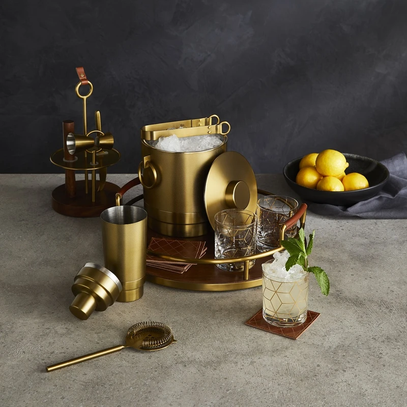 愛開趴的人,必入手與美國百年皮件品牌FRYE的一系列商品,在黃銅製成的冰桶組、搖酒器、托盤、調酒工具組裡,都加入了皮革細節,讓常見的工具增添質感,也更加迷人、懷舊。請朋友來家中時,肯定超神氣。