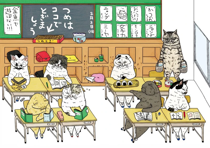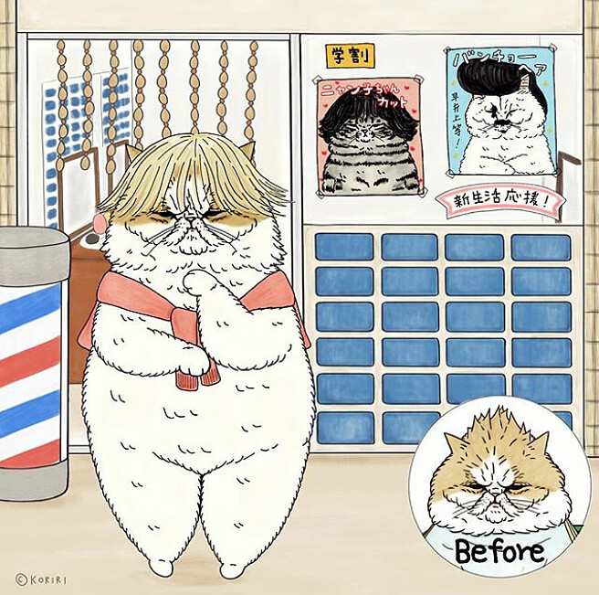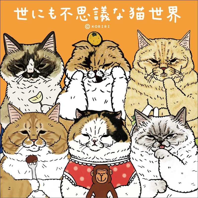 日本插畫家KORIRI以家中貓咪橘子(みかん)、春男為插畫原型,將兩隻貓咪生活中崩壞的表情、行為,結合想像創造出「不可思議的貓世界」,究竟多們不可思議?