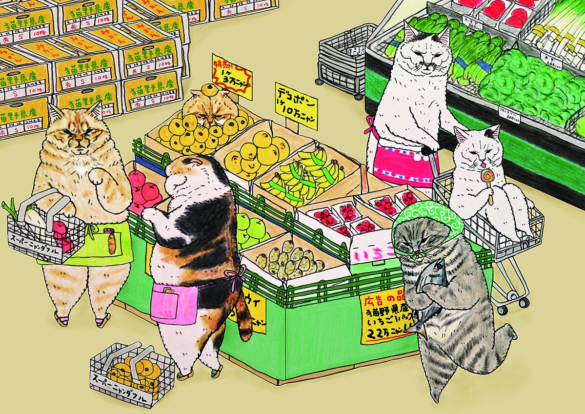在「不可思議的貓世界」裡面的貓咪完全就像人類一樣生活,會去超市買東西,但應該整車應該都是罐罐或肉泥才對!
