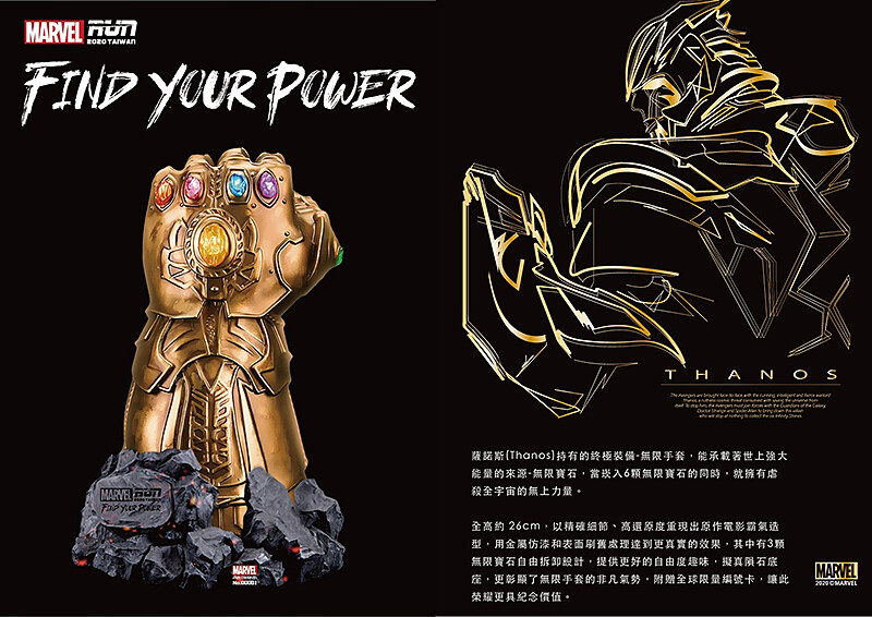 MARVEL RUN TAIWAN路跑賽事獨家限量紀念品,超擬真級收藏-薩諾斯(Thanos)-無限手套雕像組,凡同時報名MARVEL RUN TAIWAN路跑賽事含台北、台中、高雄三個場次即可獲得無限手套乙個,同時搜集三個場次的完賽獎牌寶石,可完成含有6顆寶石的無限手套。