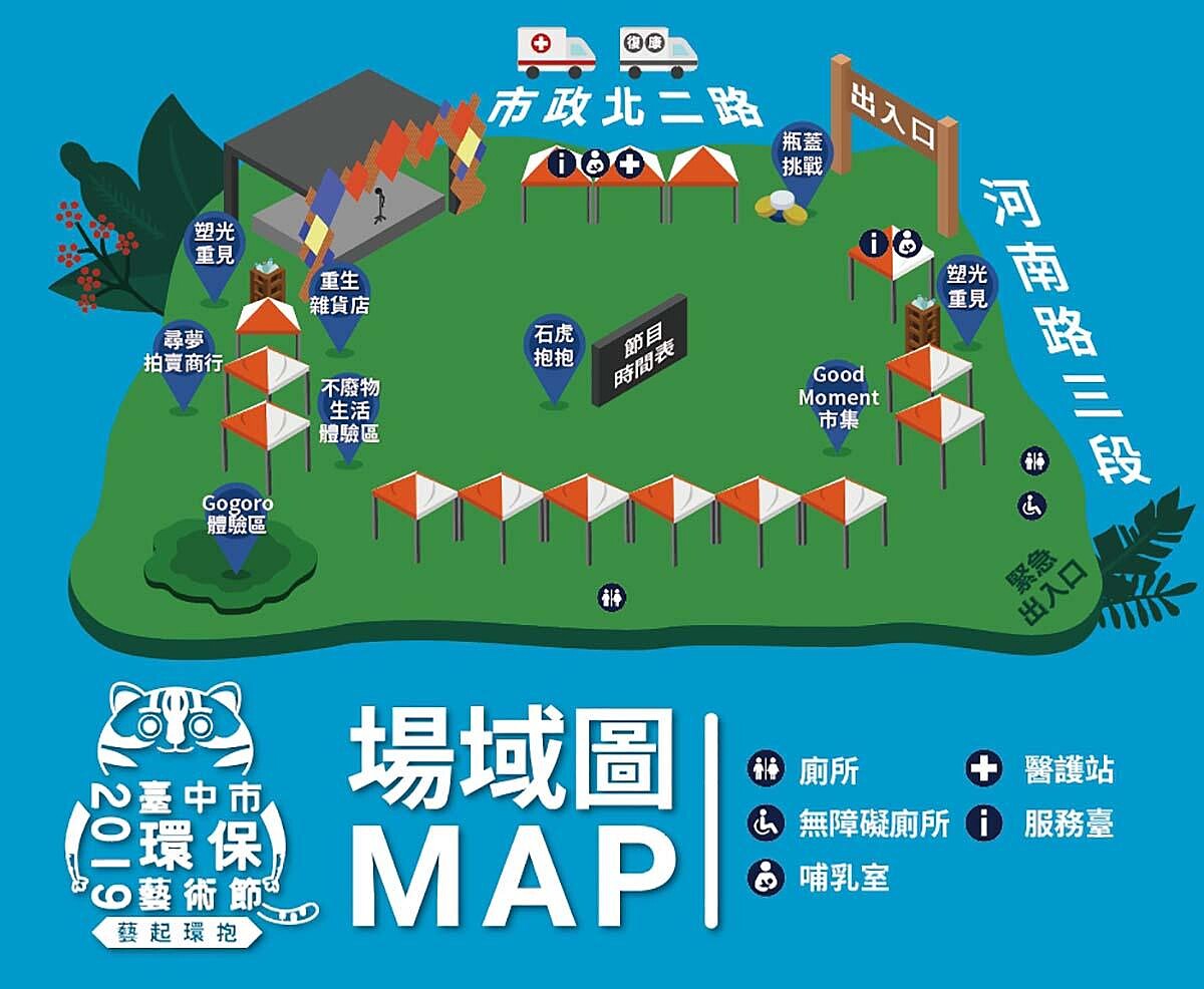 台中市2019環保藝術節以「藝起環抱」為主題,結合了音樂展演,邀請到多位新生代樂團參與演出,活動現場共有8大區域皆是藝術的呈現,不論是情侶或是一家大小都能夠開心遊玩,利用週末的時間,體會環保與生活的美學吧。