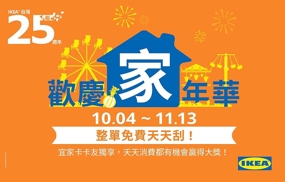 擁有簡約線條、易搭配性的瑞典家居品牌IKEA宜家家居,自1994年來深受台灣民眾喜愛,為了歡慶走過25年個年頭,將從10/4起在全台6家門市舉辦「歡慶家年華」!更推出4大活動要回饋給鐵粉們,真的揪感心啦!
