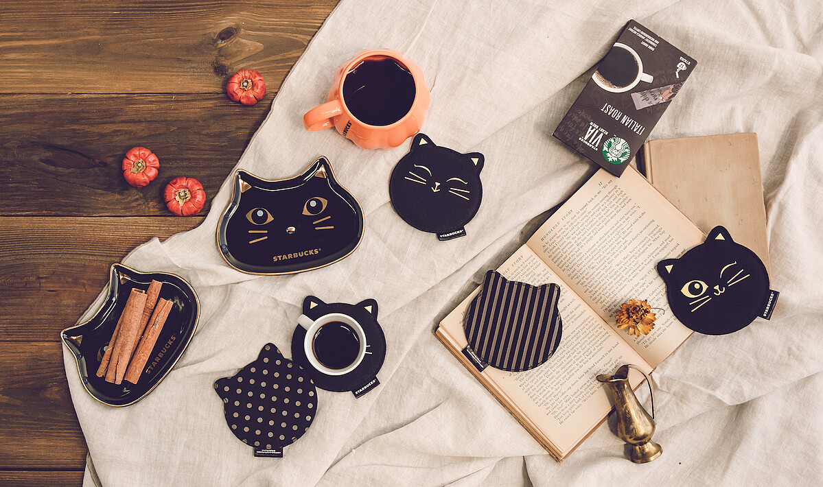 這次的星巴克Halloween系列,光是黑貓款就有10幾款以上,包括「俏皮黑貓馬克杯」、「黑貓變裝騎士馬克杯」、「黑貓精靈派對馬克杯」、「黑貓把手雙層玻璃杯」等,完全就是辦公桌的療癒單品。
