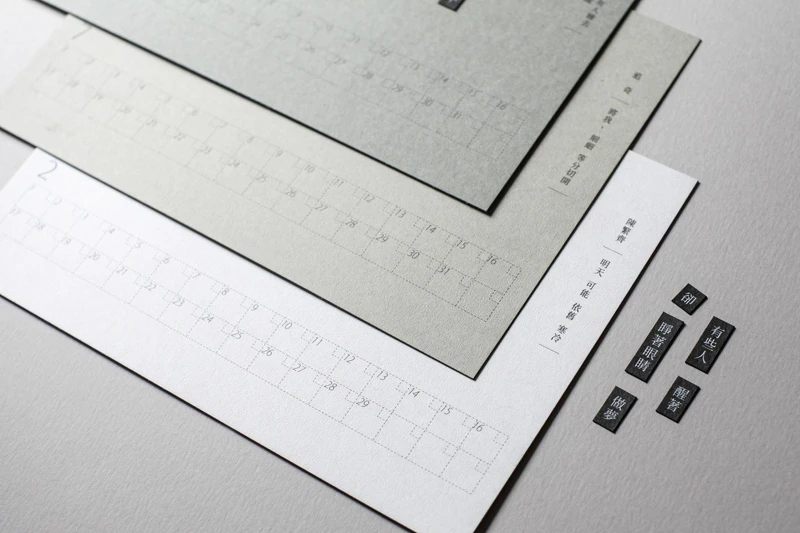 啟發自國外行之有年的磁力詩,「詩心引力」磁力詩生活月曆是由《聯合文學》雜誌企劃開發,與傳統紙器單位「美好物件」合作,兩家老字號的業者聯名跨界創新,利用「磁粉」與帶有羊絨觸感的「里紙」,共同研發月曆材質與字詞磁鐵。