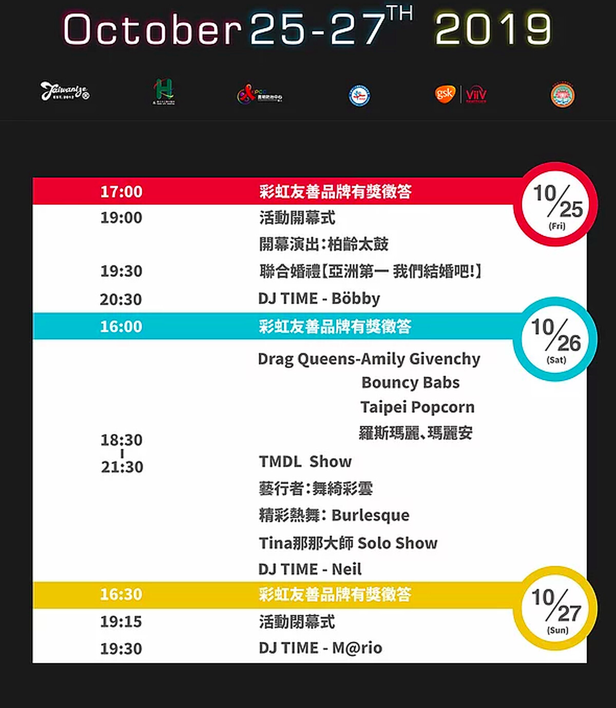 「2019 台北市國際彩虹文化節」資訊: