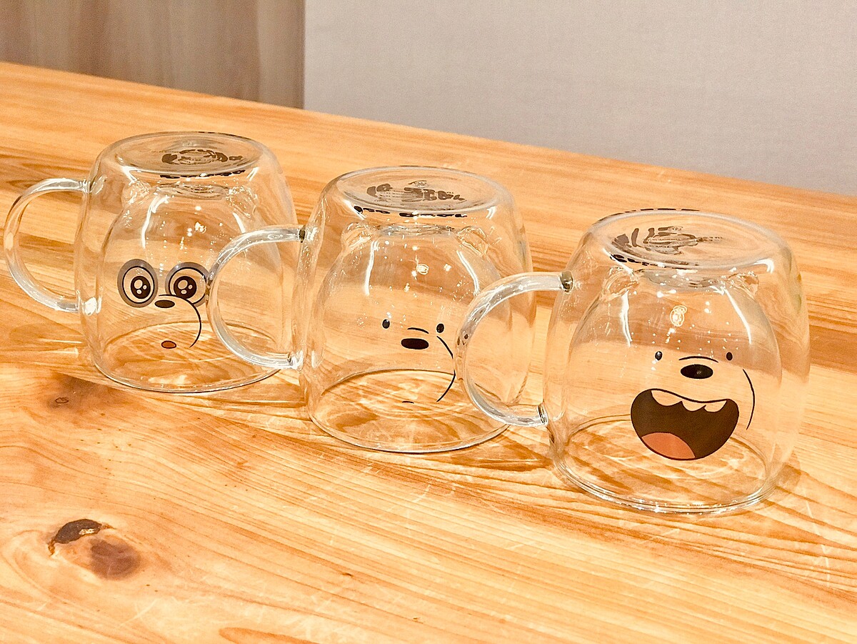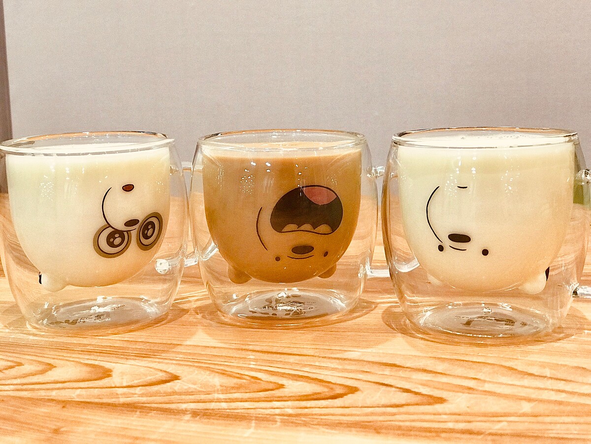 看著三隻熊熊Grizzly、Panda、Ice Bear化身成雙層玻璃杯太可愛了!