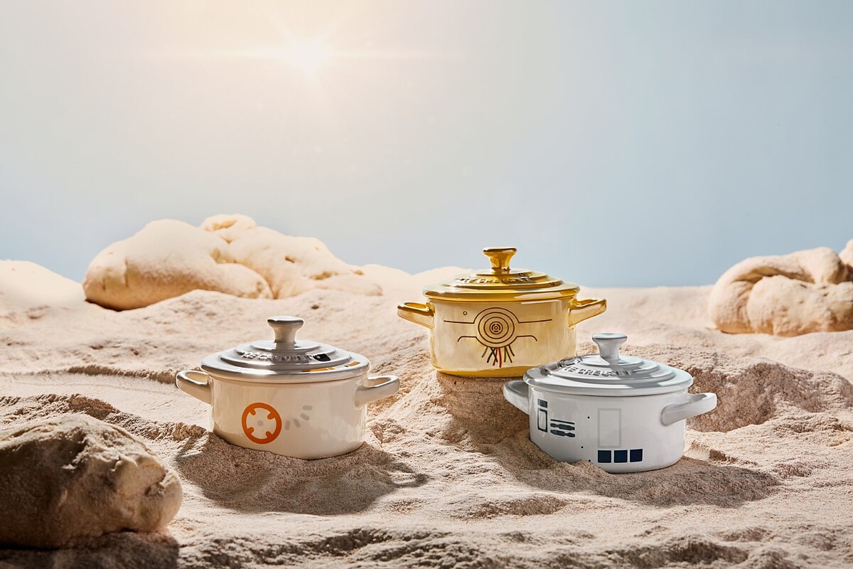 其他星戰系列還包括「黑武士典藏鑄鐵圓鍋」、「碳凍韓索羅長方鐵烤盤」、「星際大戰機器人天團迷你圓烤盅三件組」、隔熱墊(死星) 、隔熱墊(千年鷹號)以及限量版波波派鳥,Le Creuset 星際大戰系列將獨家與新光三越合作,即日起供VIP限量預購,11月1日全面上市。