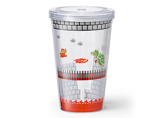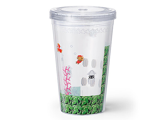 這款可以重複清洗及使用的杯子,倒入水之後還原了超級瑪利歐闖關的畫面~最上方的吸管還製作成闖關成功的模樣,真的是太生火了!