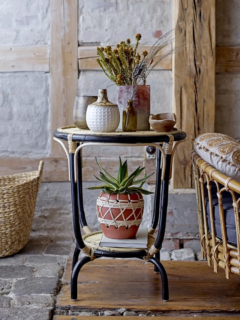 延續著春夏的自然風格,秋冬系列則在巧妙在用色上,將竹子、木材、赤陶等充滿大地元素的材質,換上自然色階,或是用黑色展現深沉氛圍。編織掛鏡有著如捕夢網的設計,藤製圓形邊桌則是籐編與黑色的完美融合。另外也有了新設計,餐具如杯碗上的「拼接」設計,一次能感受兩種材質的溫潤質感;燈芯絨L型沙發不只換上湖水綠,還能按照喜好更改擺放位置,讓空間佈置活起來。