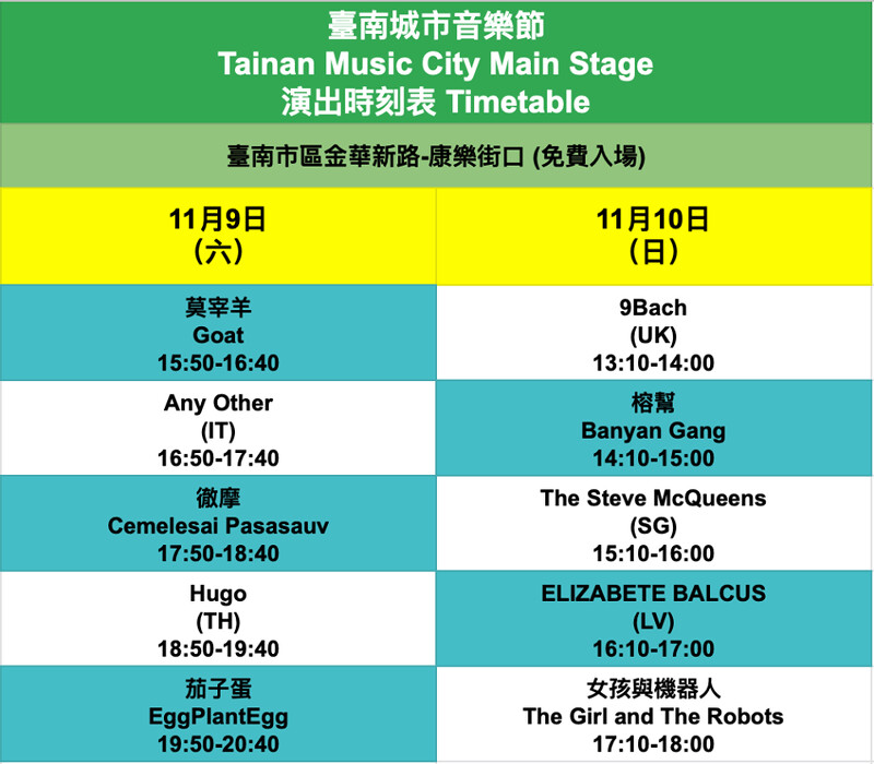 「2019臺南城市音樂節」週末登場!詳細演出陣容、時刻表全公開,茄子蛋、女孩與機器人免費開唱