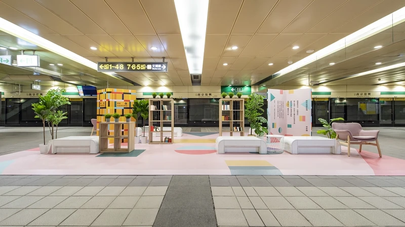 南京復興站則因應上班族與親子族群多,在轉乘通道上打造同樂空間,家長與孩童都能在此稍作休息,候車區則有繽紛色塊、扶手椅、書櫃與巨型書,推廣通勤族多閱讀。IKEA更偷偷透露:轉乘長廊上會有玩偶地貼,勢必會是一大驚喜!