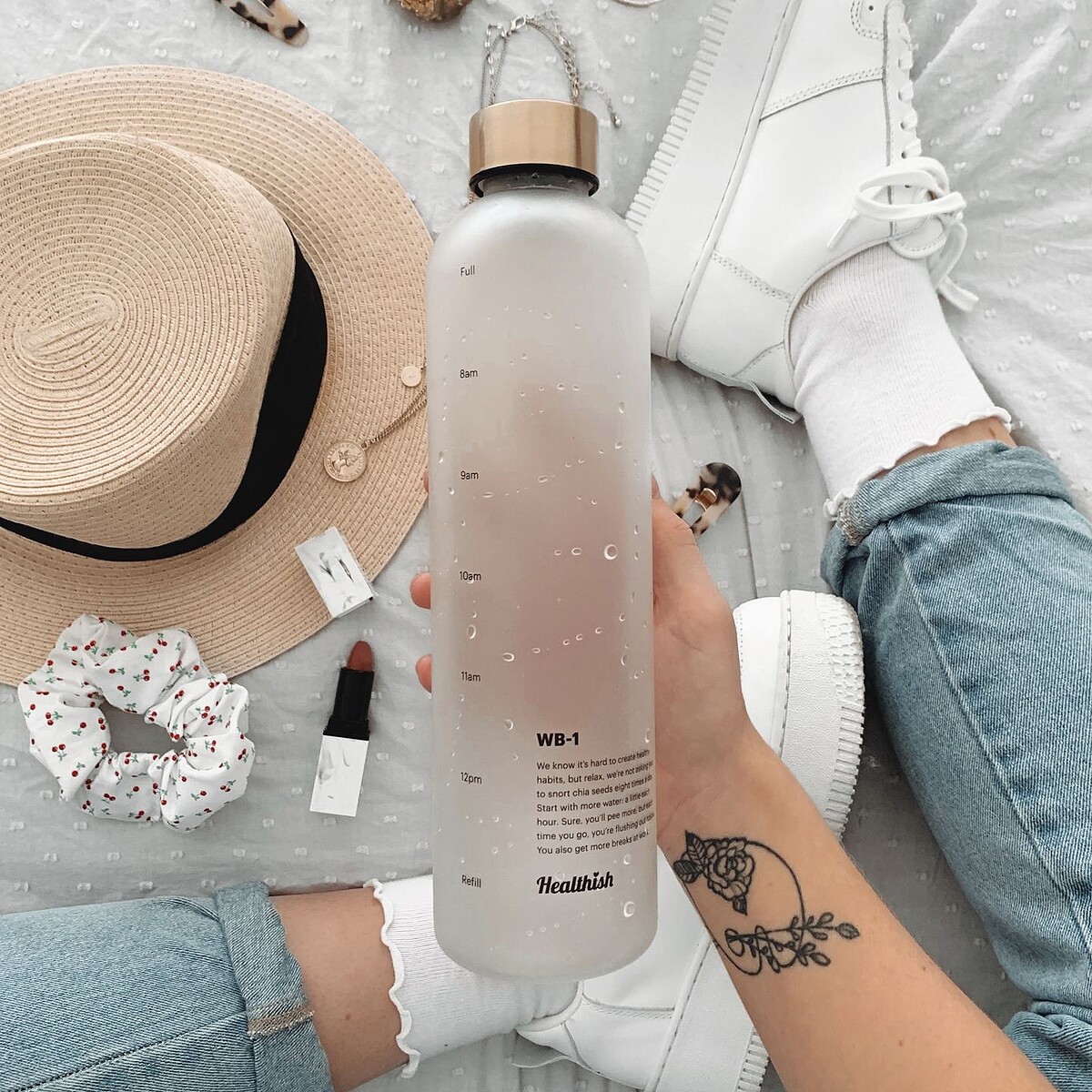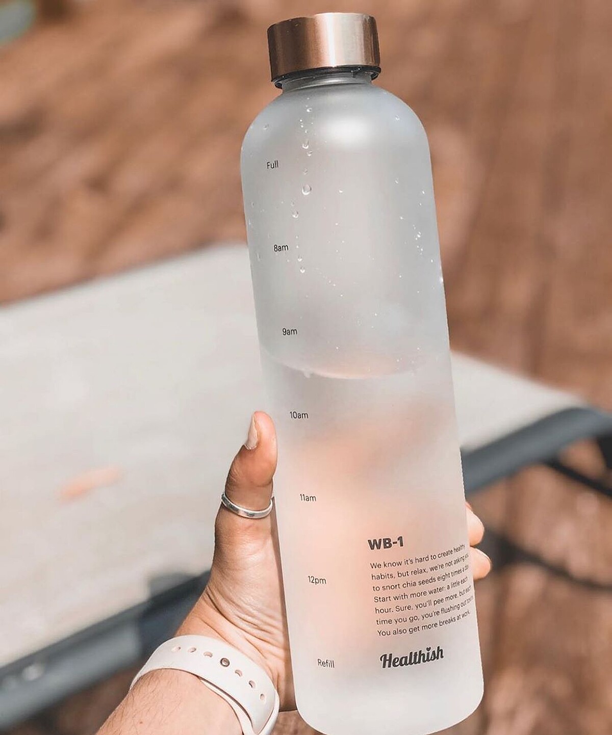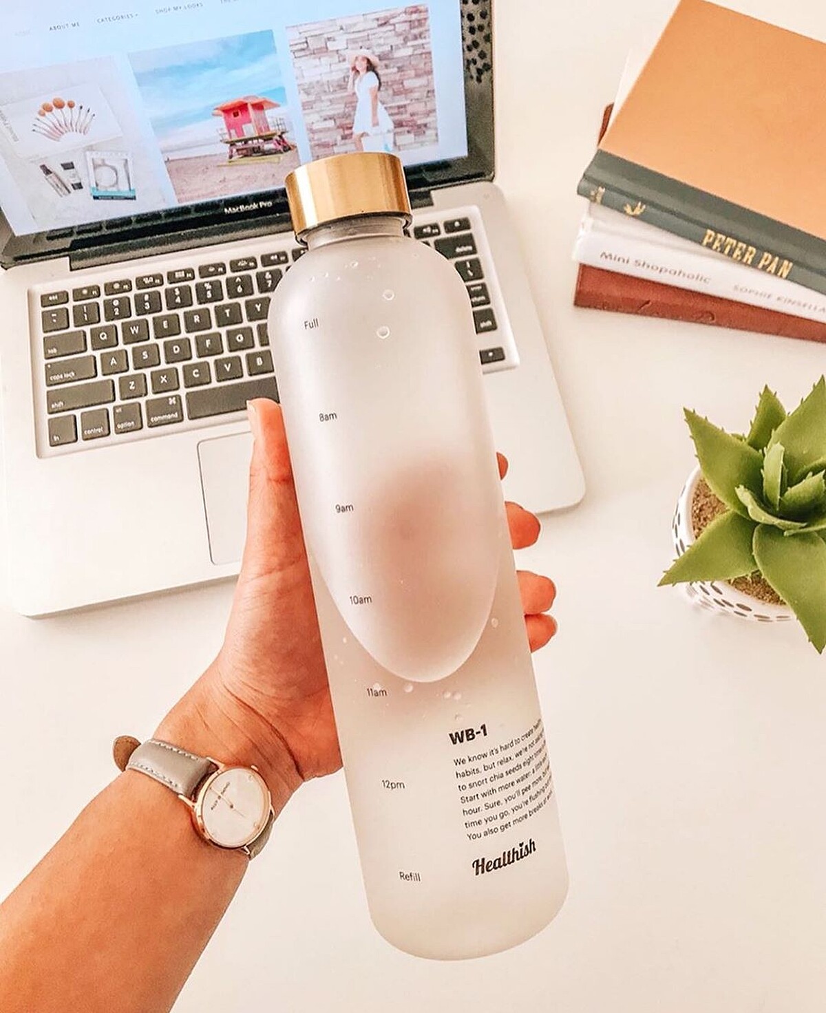 最近在國外品牌Healthish推出「時間表水瓶」半透明的外觀簡約時尚,再搭配金色瓶蓋非常具又質感,瓶身還有時間表停醒大家多喝水!