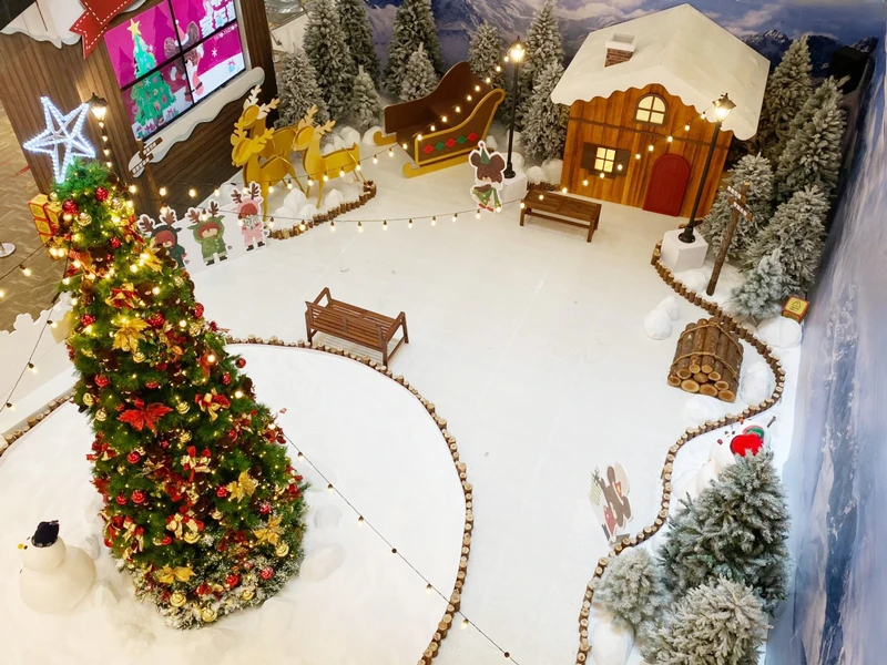 室內居然也可以下雪~中和環球定時每兩小時從高空飄落白雪,就像進入冰雪世界與小熊們一起在森林中玩雪、拉雪橇!