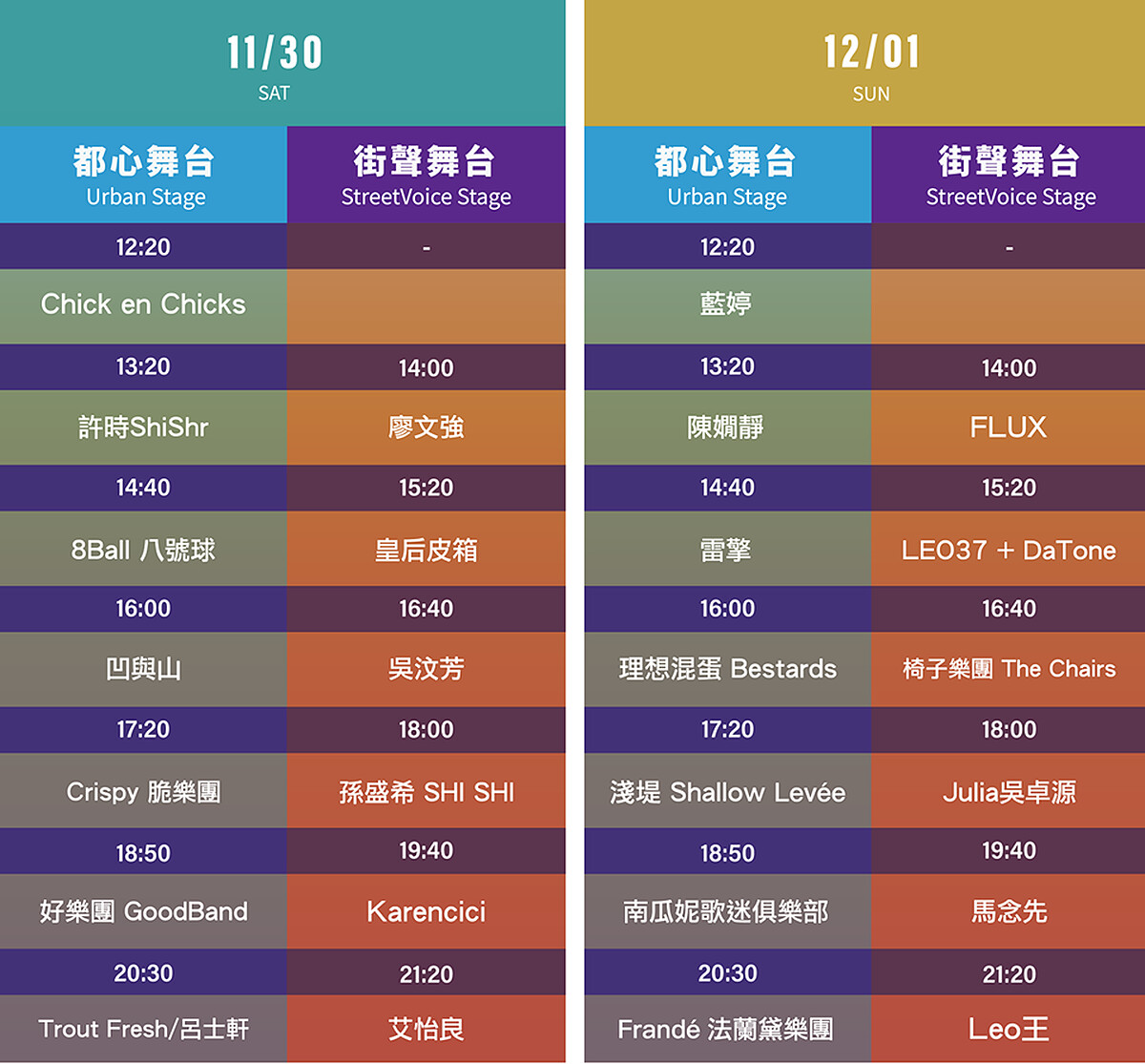 完整卡司及表演時刻表如下: