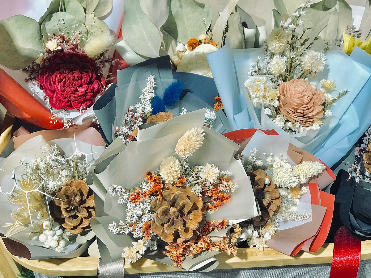 時常有不同的乾燥花永生花的手作課程,為了迎接耶誕節的到來推出一系列耶誕節DIY手作課程,像是耶誕樹、耶誕花圈、耶誕花束……等等。讓一切從零到有完成後會有滿滿的成就感,也非常適合當聖誕節禮物!