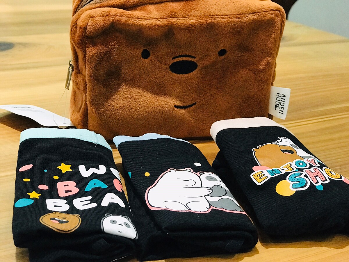 Anden Hud也與《熊熊遇見你》攜手推出冬季最可愛的系列,除了俏皮的熊熊之外,三入組還附熊熊收納包,裝著貼身衣物帶著出去玩收納方便又不失可愛。