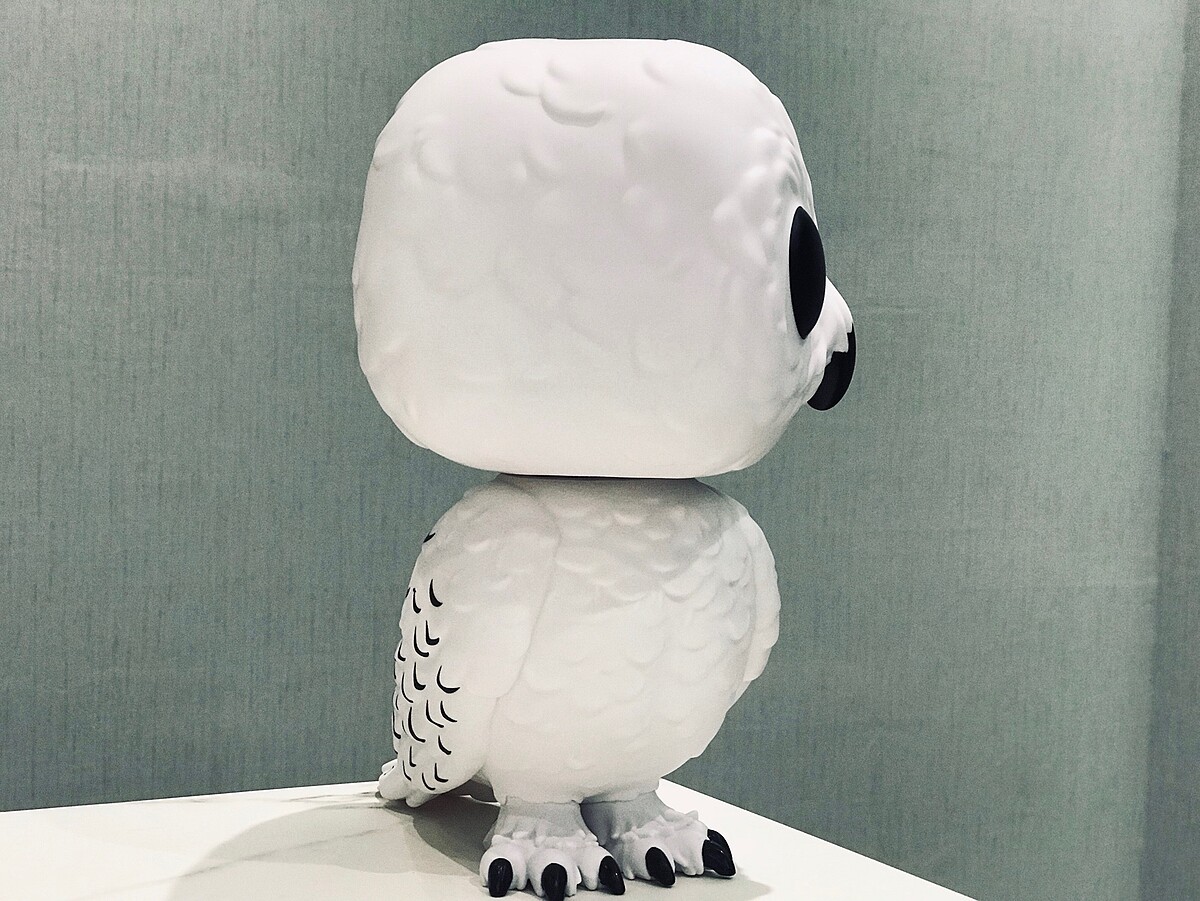 美國玩具公司FUNKO擅長Q版化各種角色做成公仔,而台灣由振光玩具代理,將《哈利波特》中充滿靈性的雪白的貓頭鷹嘿美被放大拉~
