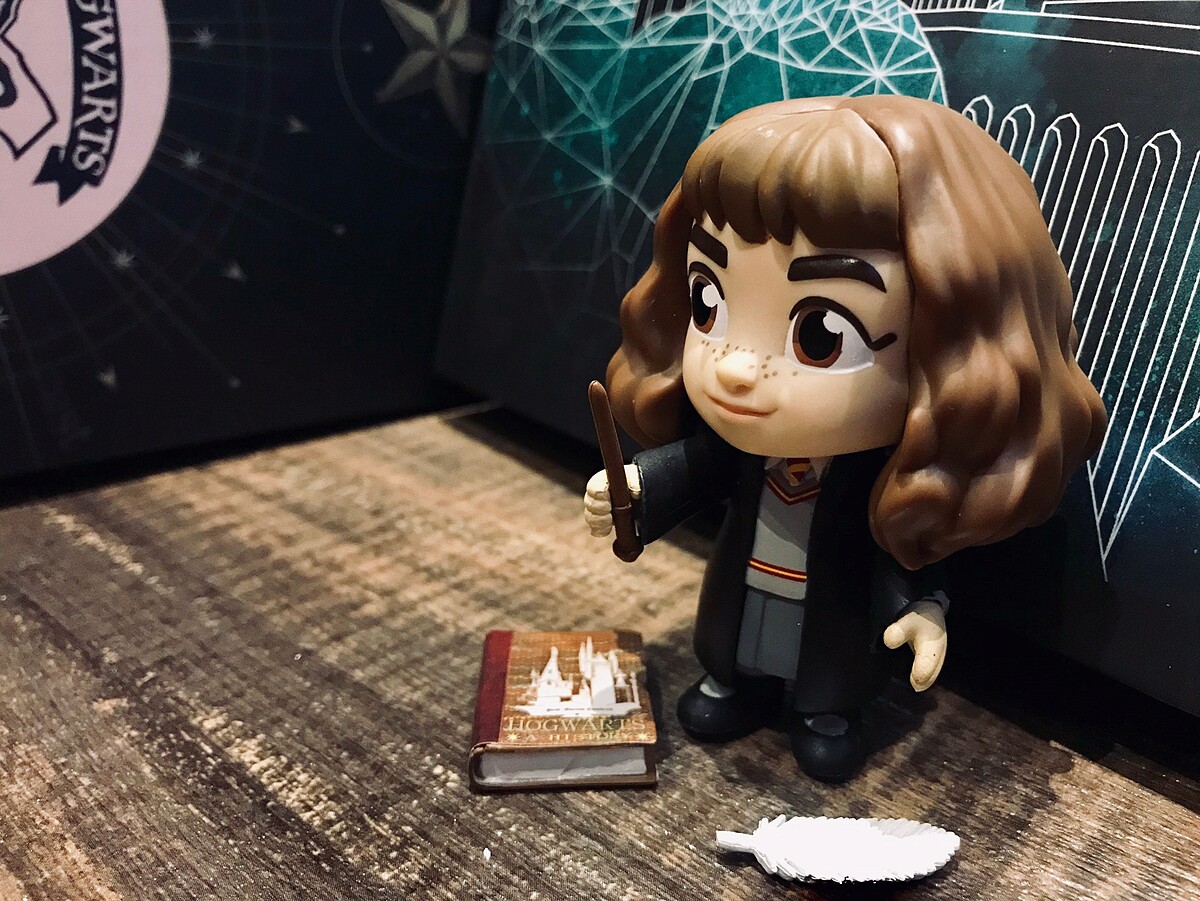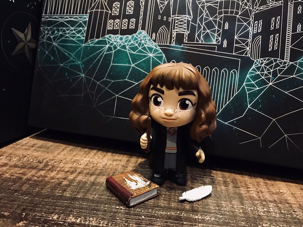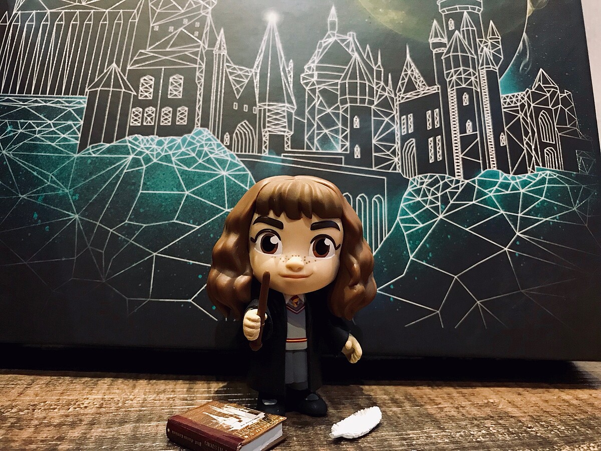 妙麗的公仔還有不同的小配件,像是魔法師必備的魔杖、妙麗最愛看的書、羽毛筆,每樣都很精美!