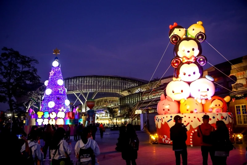 在這段聖誕時節裡,台中推出「展區最廣」的耶誕主題活動,從台中火車站前廣場,能看到14米高的TSUM TSUM聖誕樹,不論是超萌造型熱氣球或散發閃耀光芒的,都令人目不轉睛!一旁還有大型薑餅屋裝置,每周末會演奏迪士尼經典組曲、每周四~周日晚上6時到9時,每30分鐘會有長達一場4分鐘的魔法音樂燈光秀,打造視覺、聽覺雙重饗宴。