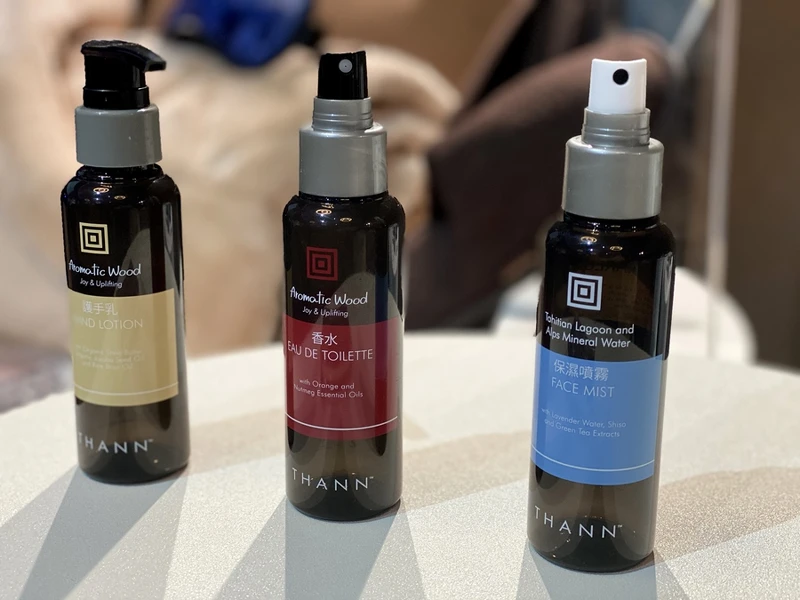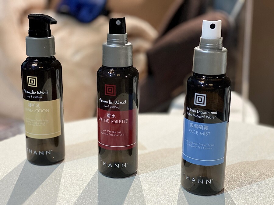 星宇航空要讓商務艙旅客的五感六覺都有頂級享受,空服員會端著木紋高雅迎賓盤,送上法國百年知名品牌DURALEX杯具的飲料,各式餐具都充滿禪意;機上能使用泰國香氛品牌THANN,臉部保濕噴霧、乳液及香水,保濕之餘也很有定心安神效果。