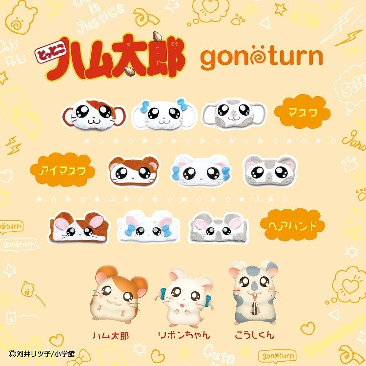 日本雜貨gonoturn推出「哈姆太郎」系列產品,將人氣角色哈姆太郎、麗麗與哆哆變成眼罩、髮帶、口罩啦!