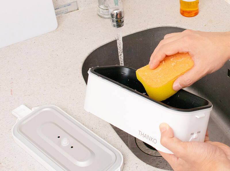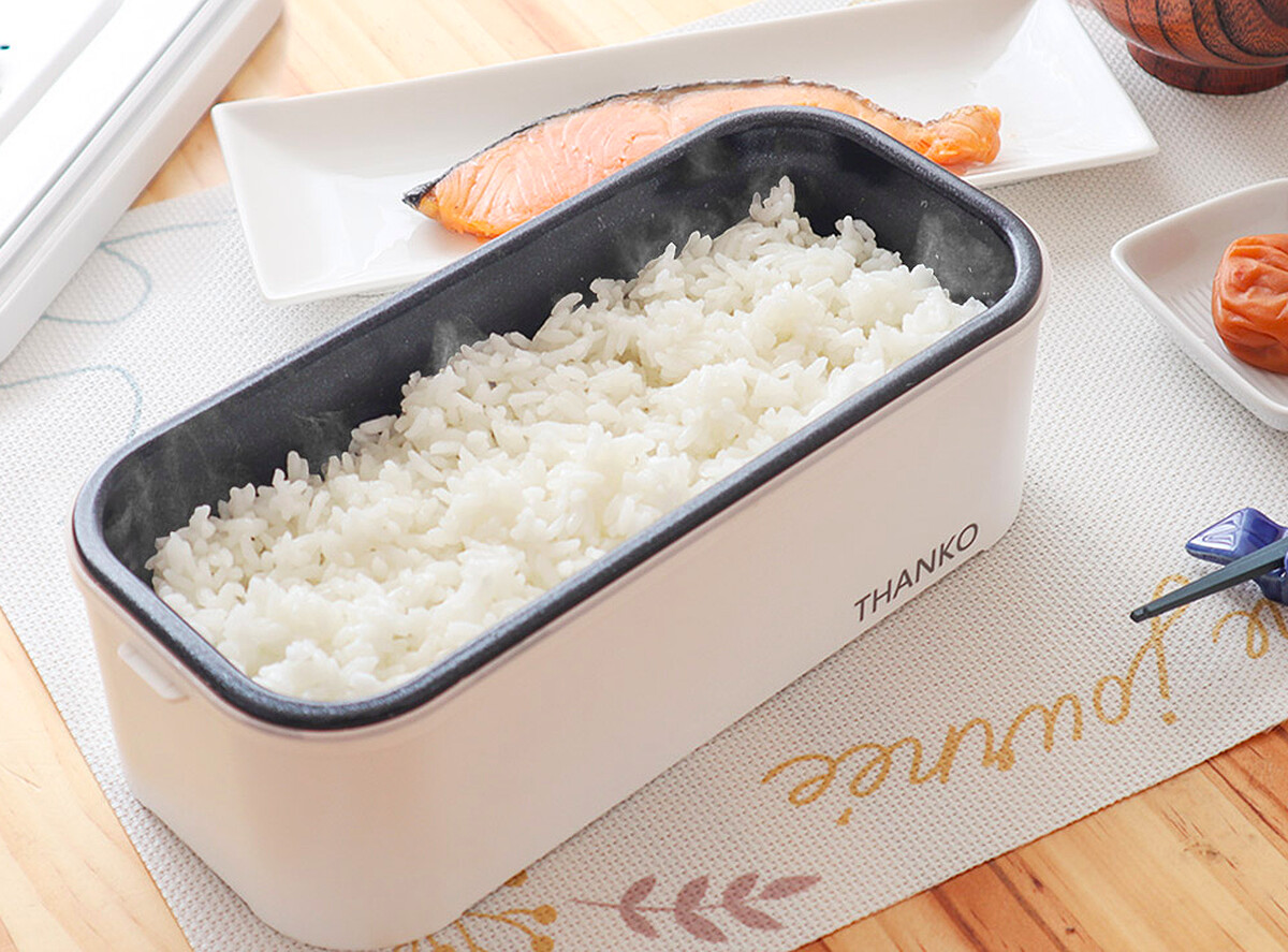 日本電器品牌Thanko推出了一人份的「加熱便當盒電鍋」,有別於厚重的電子鍋,這款便當盒的體積非常輕巧方便攜帶,最多可以煮兩人份的飯量,即使是男生也能夠吃飽!