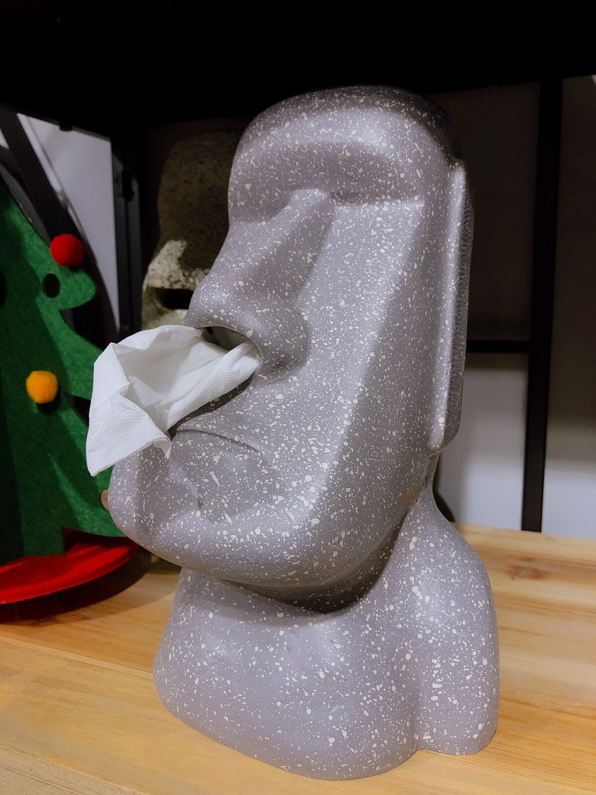 以呆萌神情風靡全世界的摩艾像,現在變成了衛生紙盒!可以從大鼻孔中抽出一張又一張的衛生紙,宛如流鼻涕般逗趣,收到這個絕對會放聲尖叫~