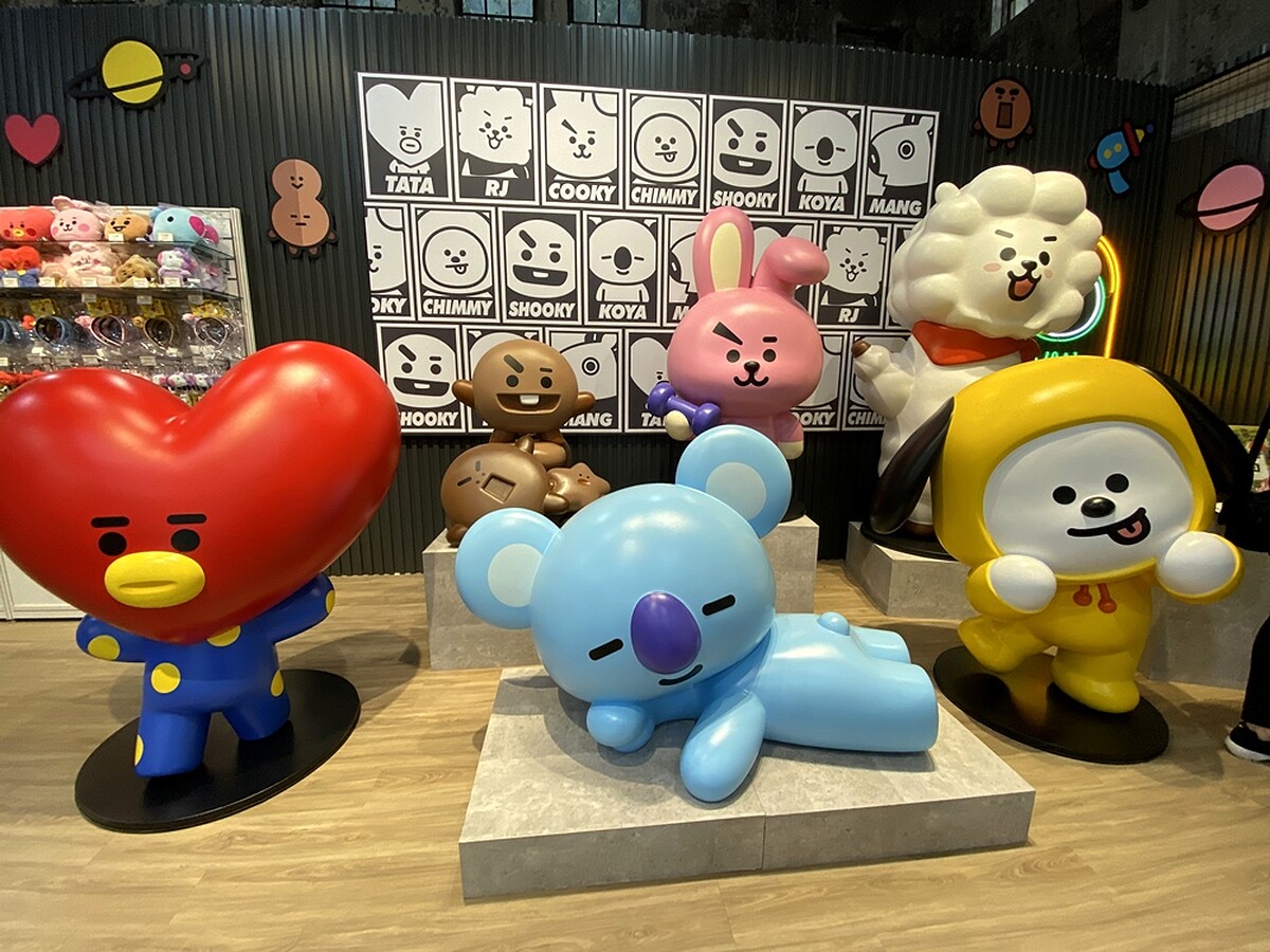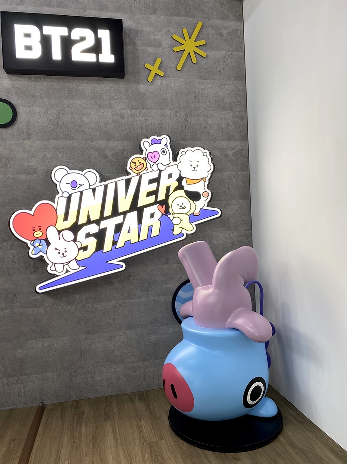 一走到店外,就會看到一大片彩繪牆能狂拍一波,走進後會看到MANG用地板動作迎接你,相信就已經心花怒放了!其餘宇宙明星BT21則都用全新姿勢登場,每一隻都值得抱緊處理啊~另外還有拍貼機,出去前別忘記留下最可愛的紀念!