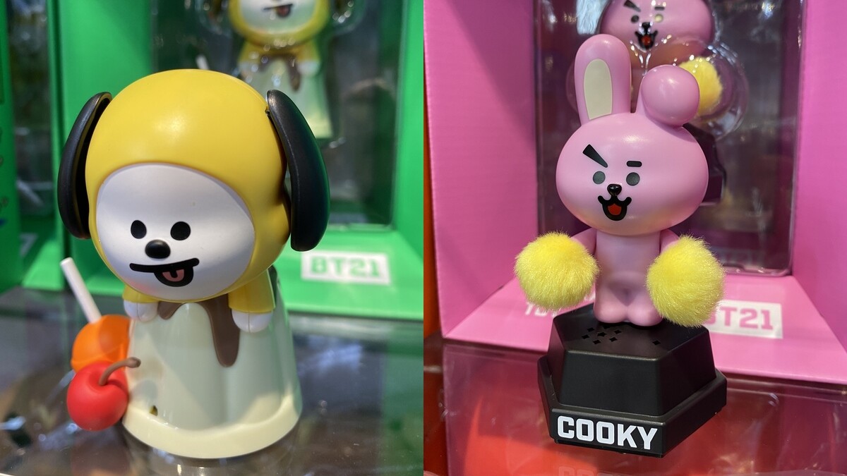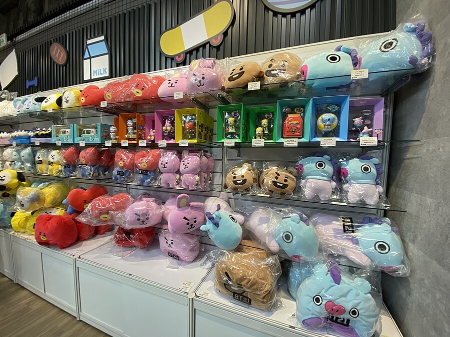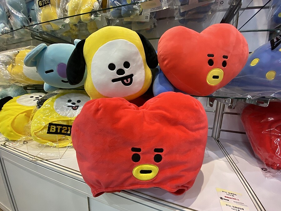 在「LINE FRIENDS 潮玩限定店」裡,首要搶的是BT21趴姿抱枕,7位角色都擺出慵懶的姿勢,加上舒適材質,抱起來超療癒。BT21絨毛玩偶造型帽則是搶先新光三越A11店開賣,更有「互動玩具」可以接收拍手、講話聲音搖頭晃腦,可愛程度破表!
