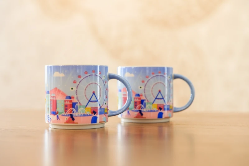 因八角形建築,室內有多邊形中島展演吧台,以及有著挑高17米的空間,從樓上往樓下俯瞰,會發現雍容有致的造型吊燈錯落垂降著,勢必將洗版IG、成為超夯打卡景點。另外還推出「麗寶鐘樓馬克杯」,用繽紛色彩與童話風筆觸,畫出天空之夢摩天輪、國際賽車場等景點,容量為16OZ,售價為550元。
