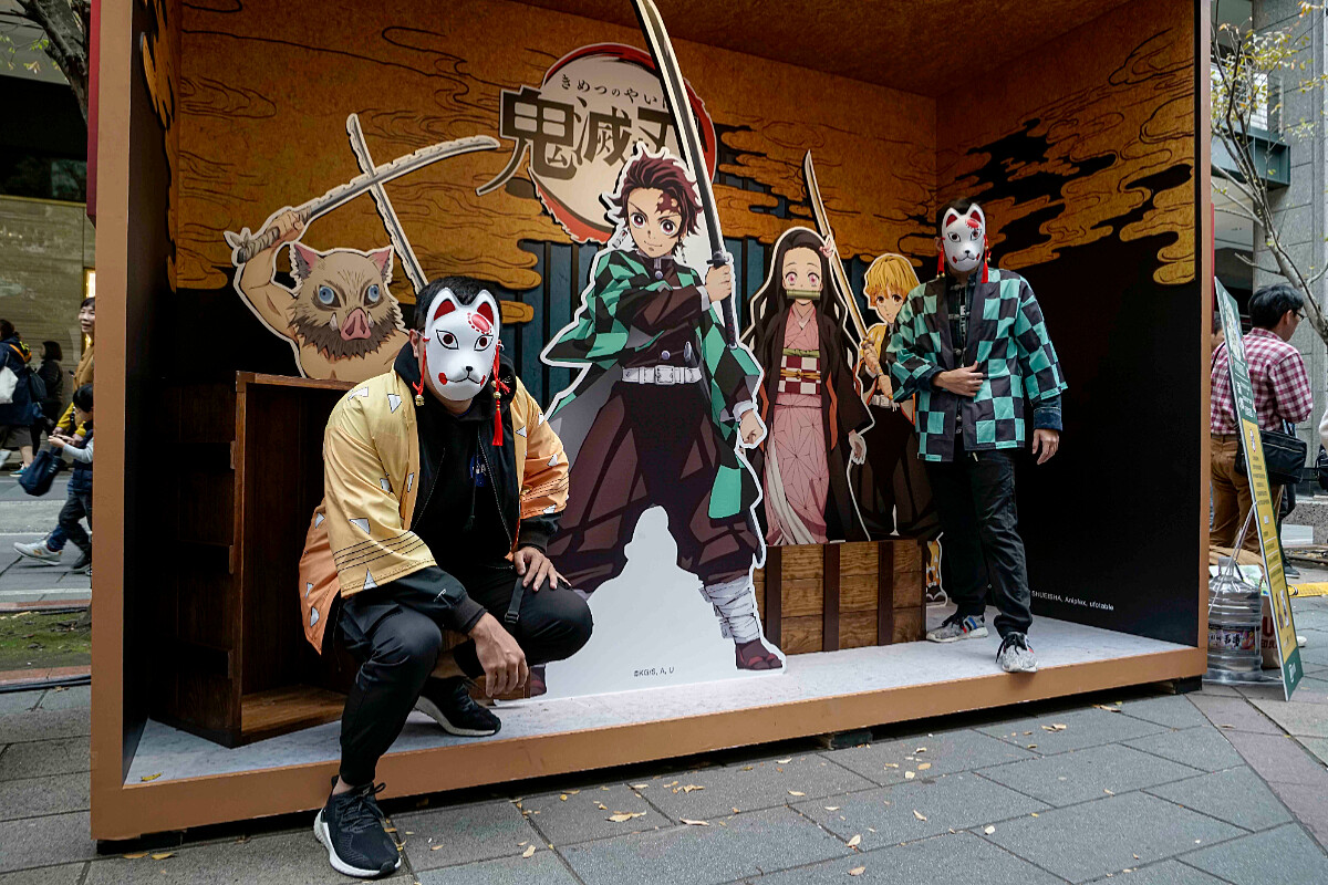 今年爆紅的動漫神作《鬼滅之刃》的第一座實體概念屋也藏在禮物盒中,民眾可以穿上主角竈門炭治郎的服裝、或戴上面具和妹妹彌豆子及夥伴善逸、伊之助一起成為鬼殺隊夥伴,還可以和劇中彌豆子一樣躲進木箱趣味合照。