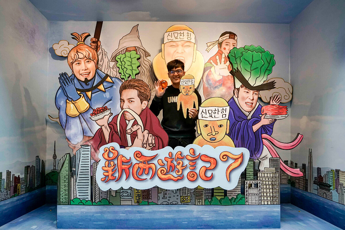 韓國超爆笑綜藝《新西遊記7》令人噴飯的海報也成為了吸睛的主題屋,巨大的姜鎬童妙漢及神燈精靈曹圭賢、蘿蔔道士宋旻浩全部都立體化,吸引超多民眾手拿龍珠及神妙漢一同合照。