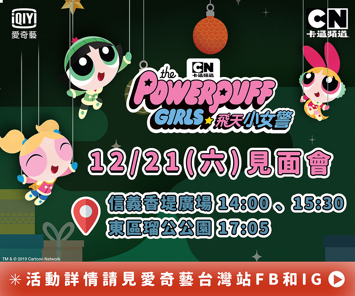 12/21(六)將邀請到大人小孩都愛的飛天小女警人偶明星來到愛奇藝聖誕任意門及露天電影院現場,與大小朋友同樂拍照,粉絲們也有機會搶答獲得最獨特的小女警造型眼鏡等聖誕節小禮物!12/31跨年夜當天1830開始,愛奇藝將全球獨家網路轉播「臺北最High新年城2020跨年晚會」,無法至台北市府廣場現場同歡的民眾,將可透過愛奇藝APP及網站收看,與愛奇藝一起嗨跨年。更多活動詳請可上愛奇藝台灣站跨年專題頁面或官方FB及IG查詢。
