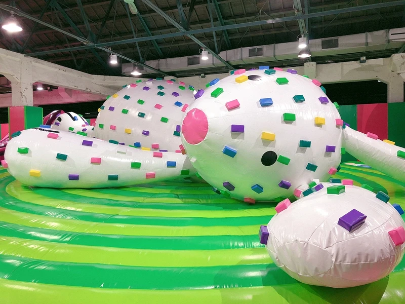 此次共展出包括11件大型氣墊,包括戶外運用跟華山園區相近配色的《爬牆虎大熊》,室內則有《黃色小鴨》、《月兔》、《泰唔士河馬》、《抱抱象》等經典作品,棕熊《鐵人》還有許多枕頭可以大打枕頭戰。最令人失心瘋的,就屬從未曝光過、全新作品《粉紅鯨》,不只粉嫩外型吸睛,還可以「進入」牠的肚子遊玩,即便是成年人也能暫時拋下煩憂,在這裡找回童心。