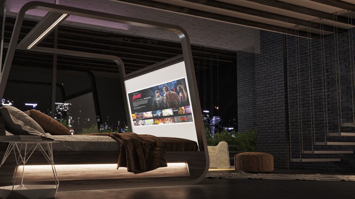 最大的亮點絕對是擁有70英吋劇大螢幕,而且音效喇叭也與床框合而為一,無論是追劇或是看電影視覺上都超滿足~