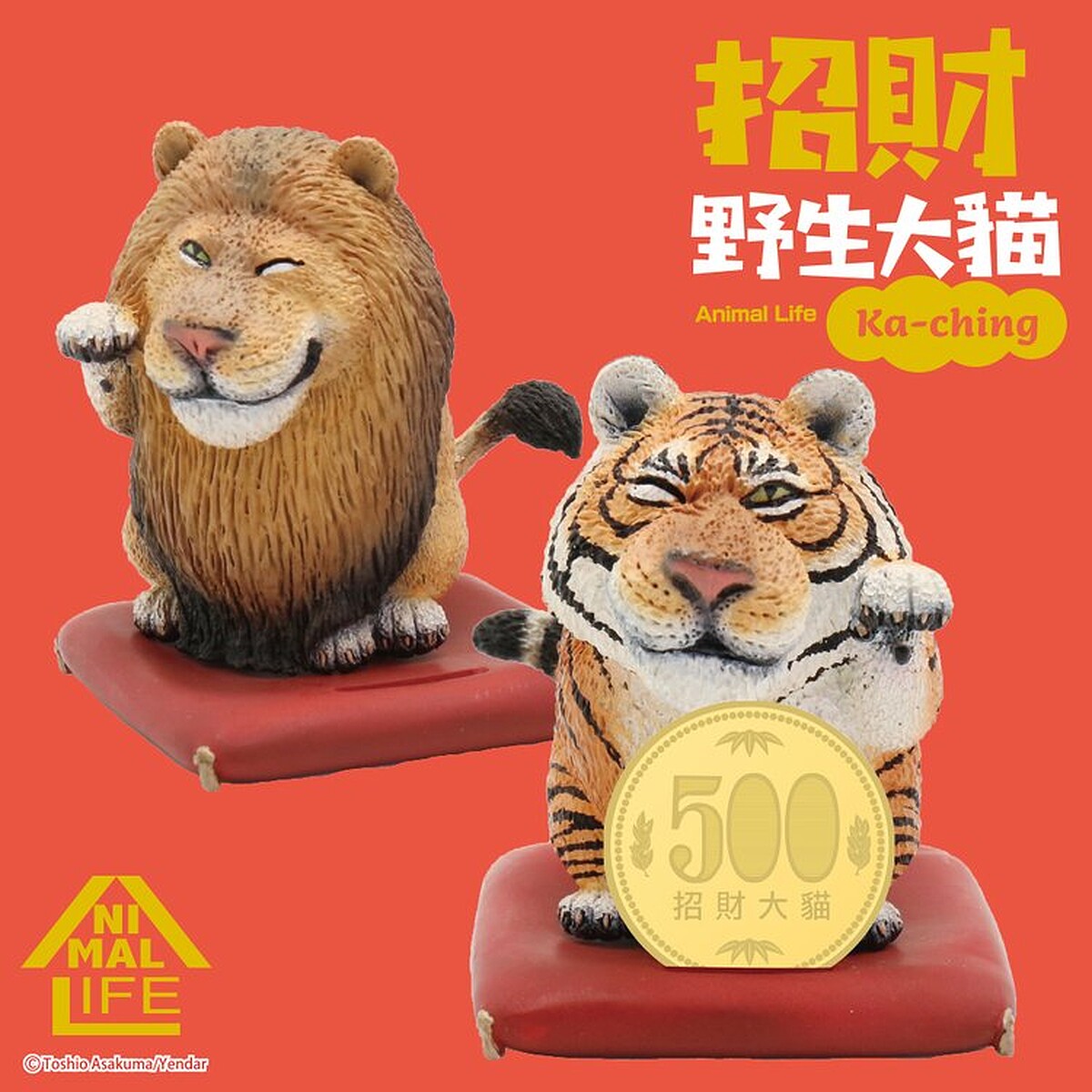 Animal Life繼之前推出喜感無極限的「圓滾滾系列」公仔引發網友熱烈討論,Animal Life與朝隈俊男再度聯手推出新年氣氛濃厚的「招財野生大貓系列」,將老虎獅子化身成另類招財貓,舉起手賣萌模樣讓人忍不住掏出錢包~好想帶回家!