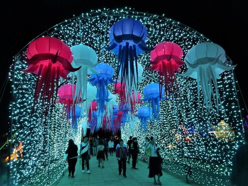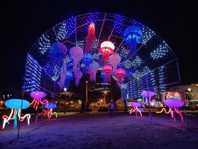 從聖誕夜點燈就起跑、位於林園的的「2020林園鼠來寶元宵燈會」,包含陸、海、空」三大主題,把身為全台唯一林園海洋濕地公園的「水母湖」,更能看到的倒立水母變成花燈,另外也有將槺郎掃帚、洋蔥、龍舟等地方特色,變身成具有奇幻奪目的花燈,立刻吸引許多當地居民拍照。