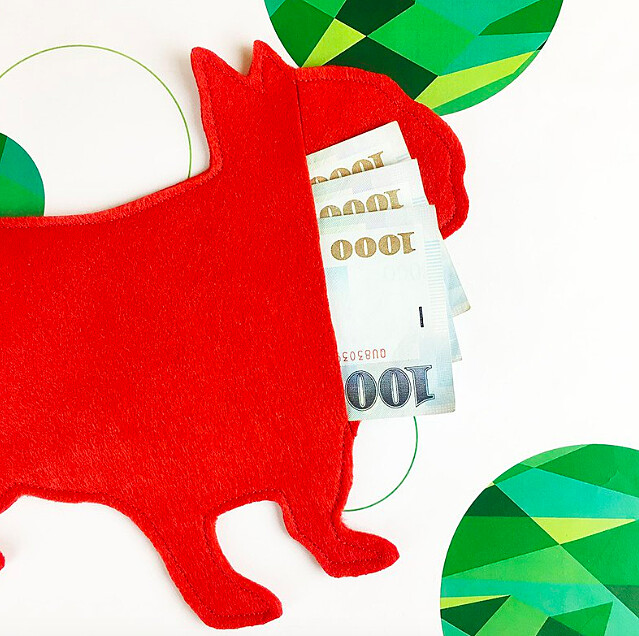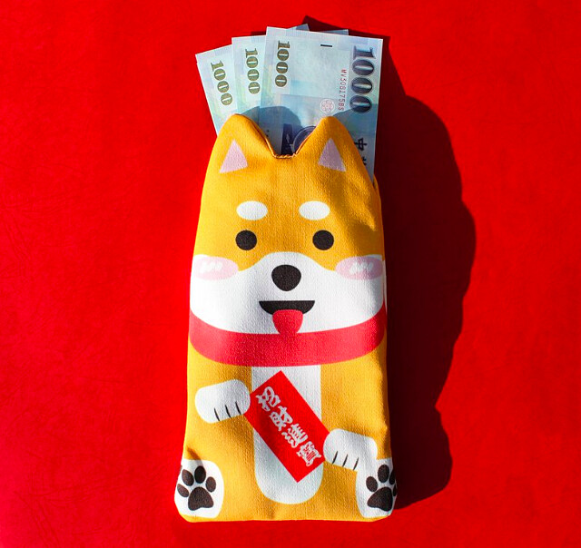 正反面有兩種不同的柴犬圖案,其中一個拿著春聯、另一款則是捧著元寶,讓大家財源滾滾來~