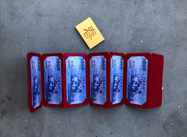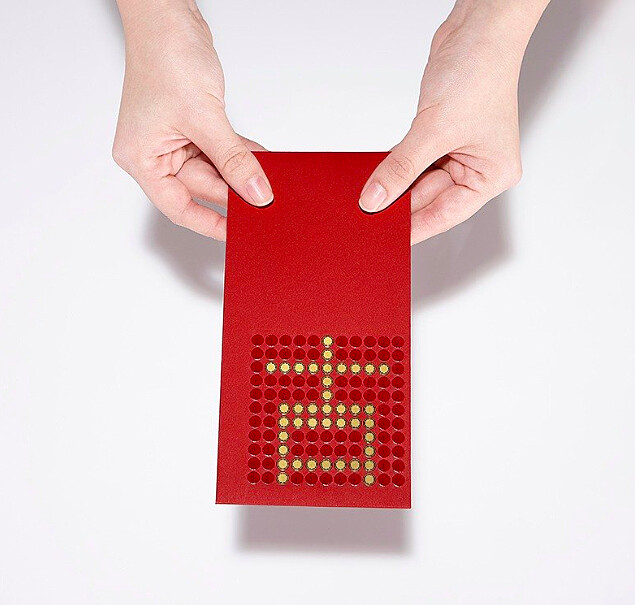 一般紅包都是將鈔票平放進去~這款可以放入6張鈔票像是古代奏章折疊的方式看起來超特別!