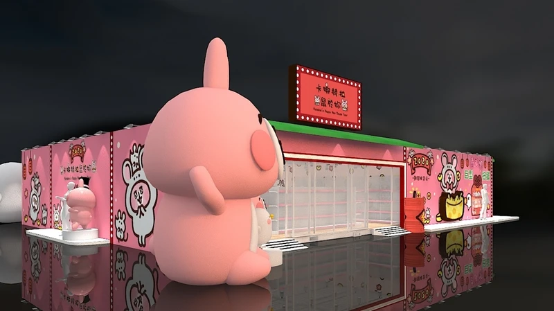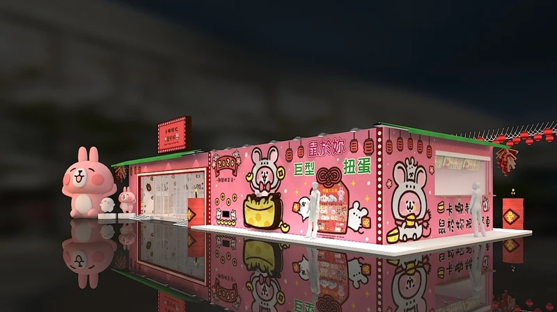 最該打卡拍照的,就是門口兩尊分別為5米、3米高的巨大兔兔及P助,而快閃店上更能看到牠們都換上可愛的萌鼠裝扮,少女心肯定立刻大噴發!還有巨型扭蛋機造型裝置藝術可以邊玩邊拍,店內還有一元復始P助與粉紅兔兔元寶金幣可以蒐集。