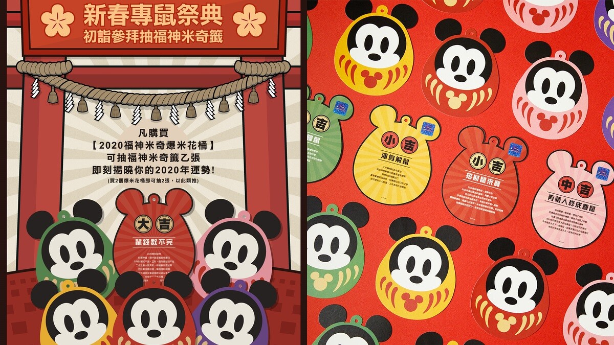 凡購買【2020福神米奇爆米花桶】,可抽福神米奇籤乙張,即刻揭曉你的2020年運勢!