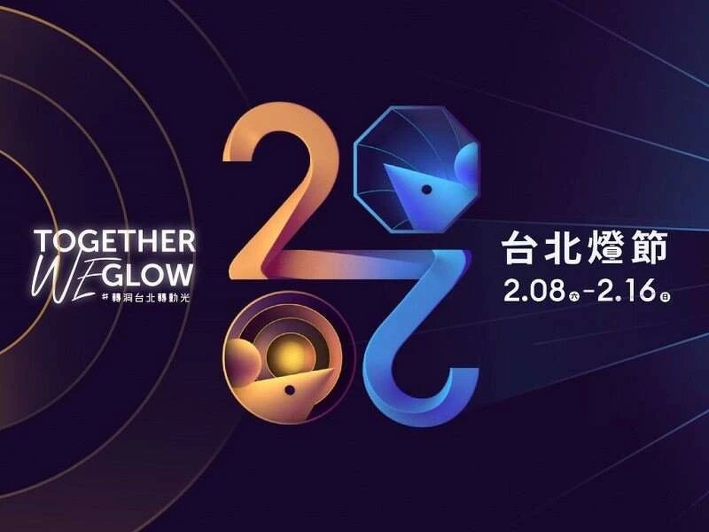 今年台北燈會以「TOGETHER WE GLOW,轉動台北轉動光」為主題,主視覺上的暖金色象徵有著台北經典風華的西區,而冷光藍則代表著台北東區的未來感。上面更有著發光的鼠洞串起兩區,也將West x East結合成「WE」,期許能團結讓台北轉動出更大的光芒與力量。