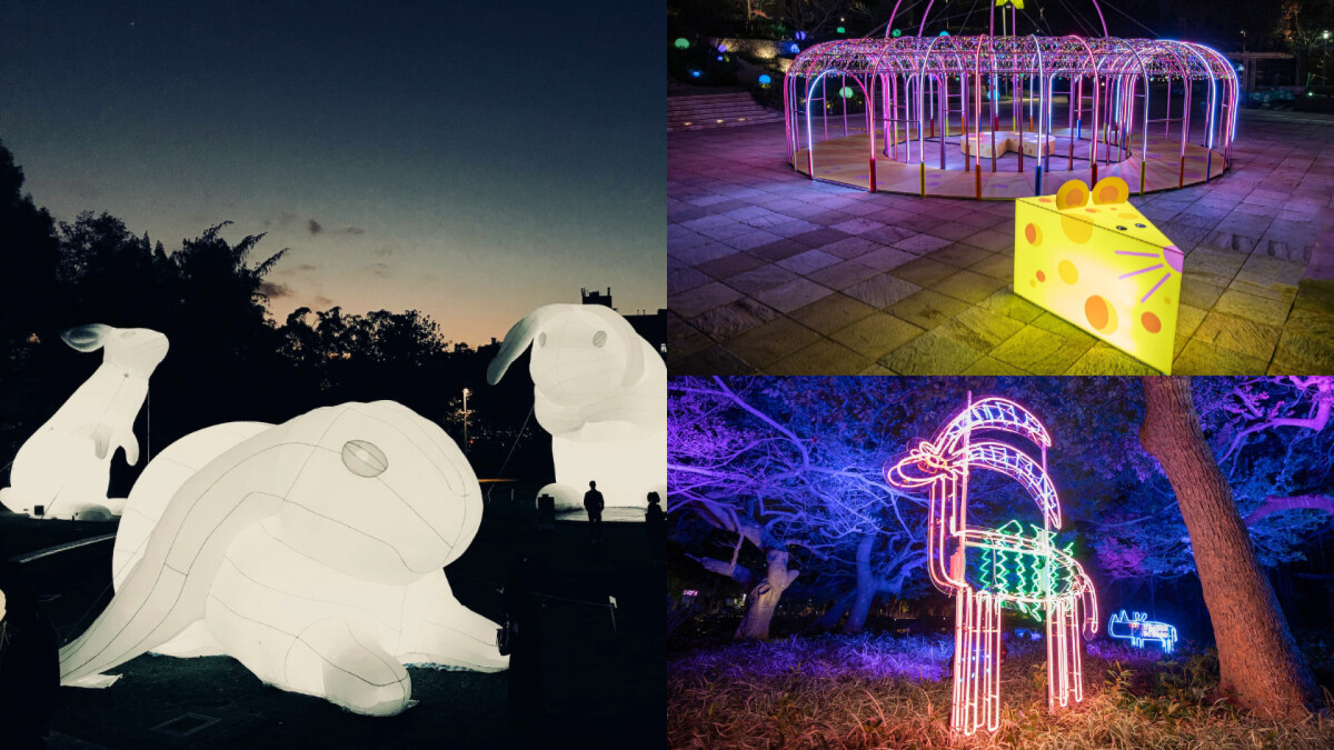因舉辦起「城市躲貓貓」燈節活動,新竹公園近日每到夜晚,便會化身一座「霓虹叢林」,共有10大燈區,包含5支七公尺高的白色巨兔、讓人省思人與環境或憶童年的長頸鹿及斑馬。入夜後的療癒動物園,快揪團去探索囉!