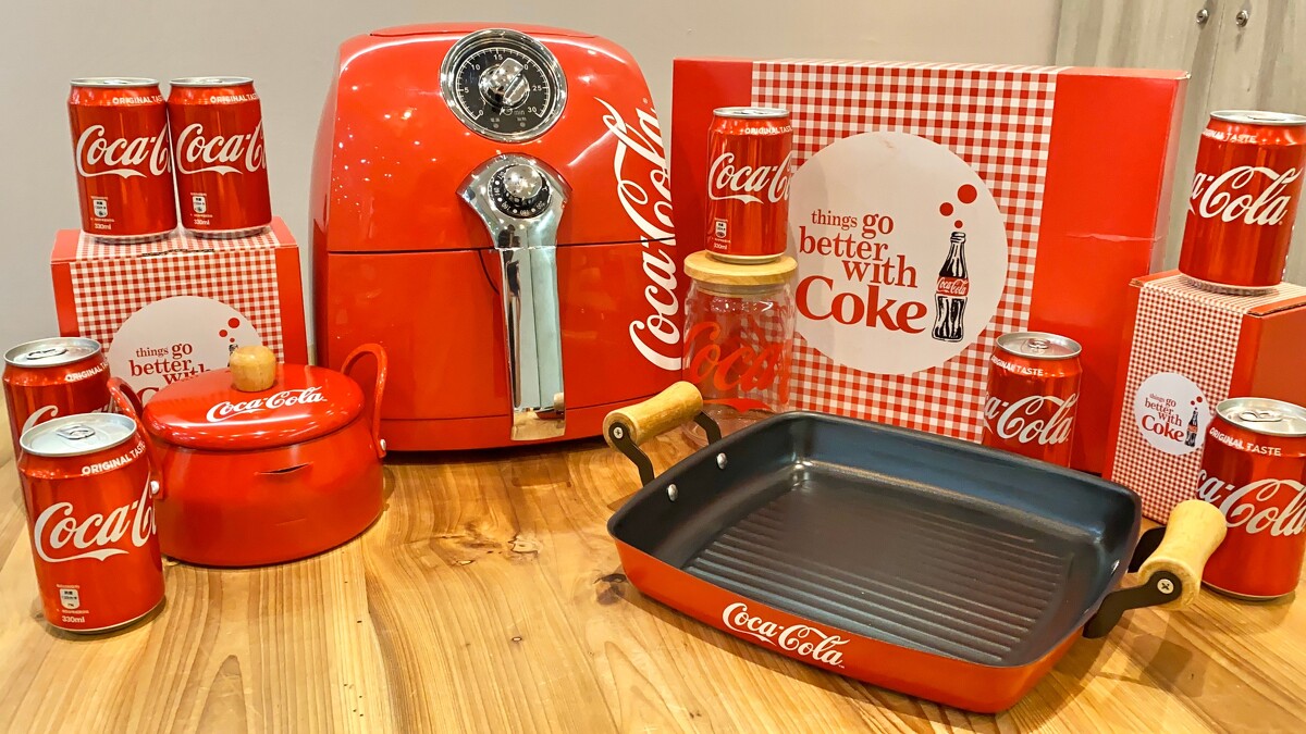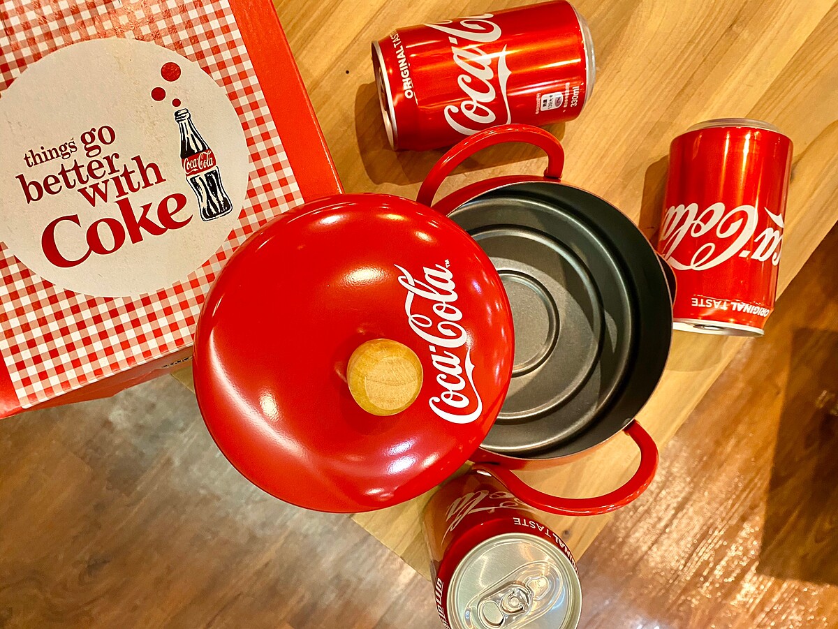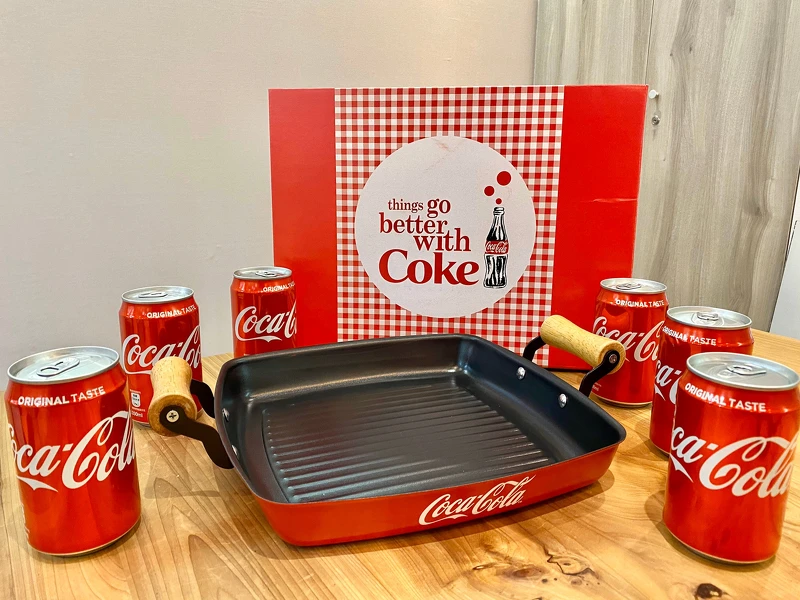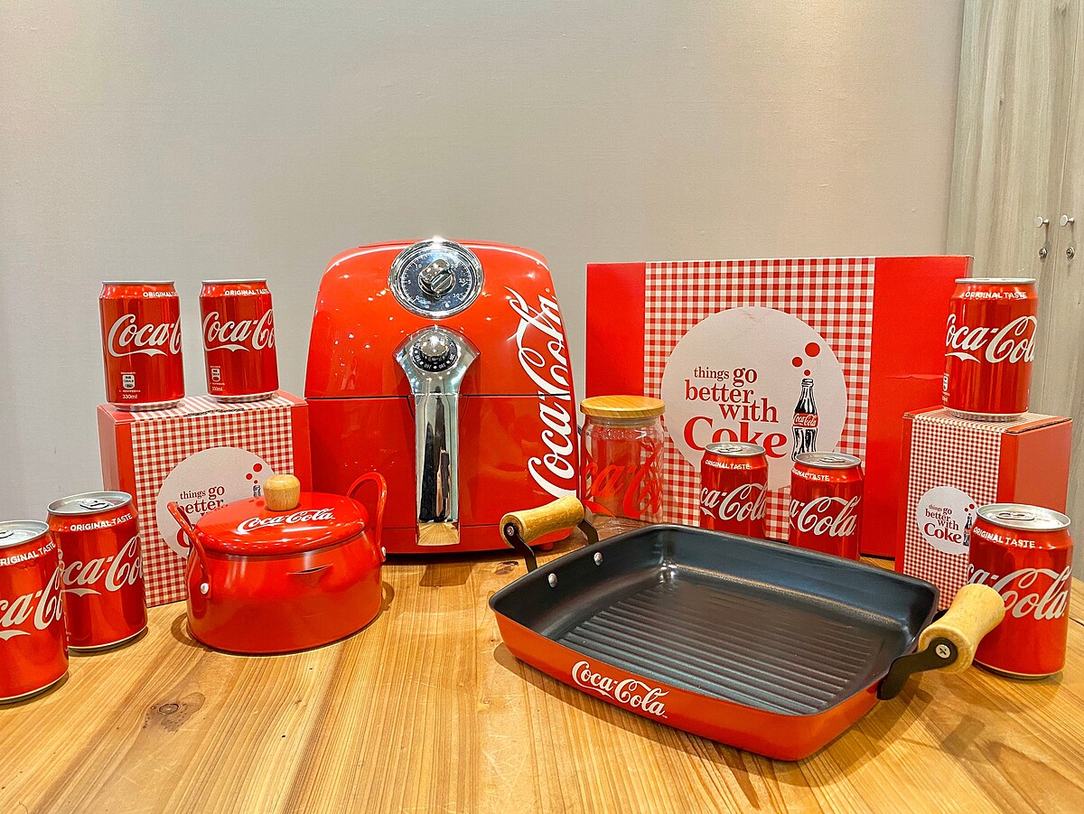 可口可樂推出食尚餐廚集點送活動連續推出4年啦~2017年與法國知名品牌Le Creuset聯名推出限量鑄鐵圓鍋;2018年「可口可樂」的曲線瓶與經典紅色躍上大同電鍋;2019年與日本知名品牌BRUNO電烤盤一起打造最潮的食尚聯名,2020可口可樂集點活動更突破極限推出可口可樂復古氣炸鍋啦!