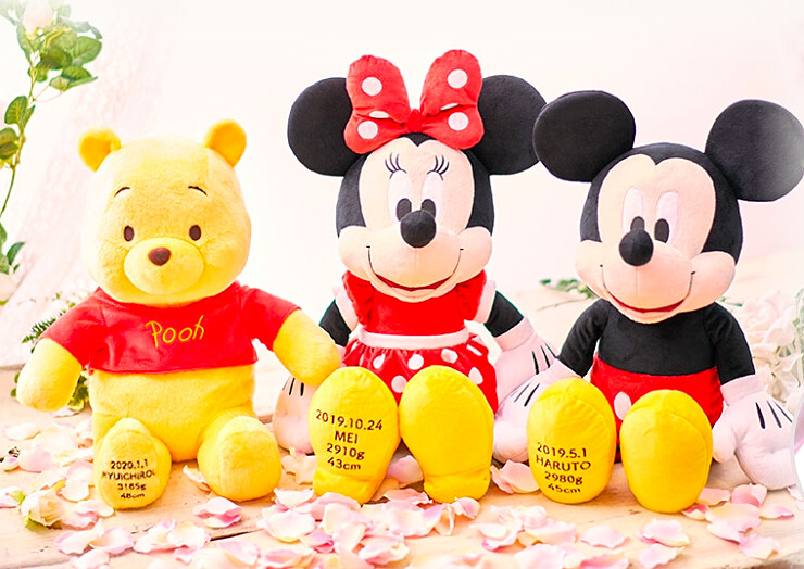 訂製刺繡款的「新生兒娃娃」將迪士尼人氣角色米奇、米妮、小熊維尼客製化啦~可以將寶寶的英文姓名、西元生日都印在上面!