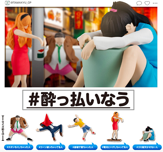 生活中與朋友來杯小酒調劑身心是最放鬆的事情~但喝多了有時候難免失態,日本扭蛋玩具公司TAMA-KYU推出了一系列共5款「酒醉中」扭蛋公仔!