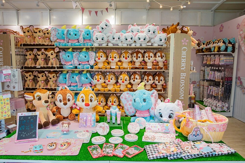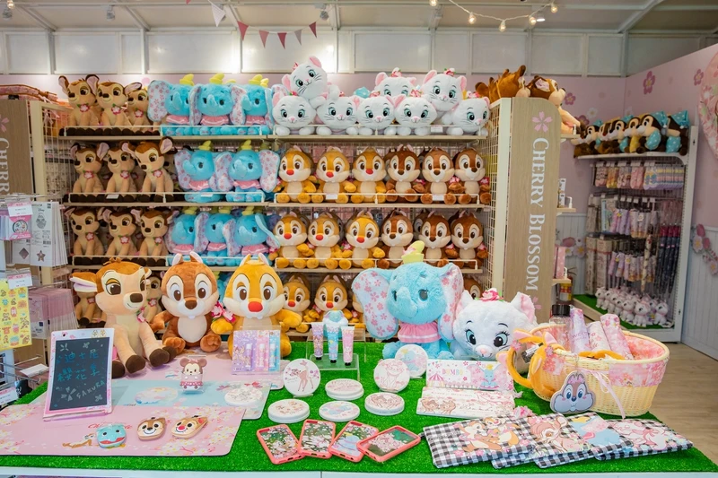 快閃店裡面有多達600項商品,其中8成都是櫻花季主題,更有多項搶先首賣商品,如野餐籃、晴雨兩用傘、珪藻土杯墊與地墊、電紙繪板等等,裏頭也有各式粉嫩手機殼、無線光學滑鼠、30~50cm趴坐姿娃娃、零錢包,令人難以抉擇!全檔期若單筆消費滿999元,就能獲得奇奇、蒂蒂、小鹿斑比、瑪麗貓、小飛象等五款造型的「櫻花季限定角色書籤」。滿3000元也能免費列印「櫻花季限定圖框照片」乙張。